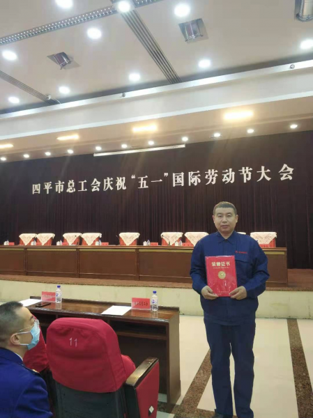 2021年4月27日,四平市總工會召開了慶祝“五一”國際勞動節(jié)大會,對2021年選樹的25個市“五一勞動獎狀”獲得單位、64名“五一勞動獎?wù)?rdquo;獲得者和19 個“工人先鋒號”獲得單位進行了表彰。我公司設(shè)備處檢修作業(yè)區(qū)焊鉗組組長劉軍同志被授予2021年四平市五一勞動獎?wù)隆?/p>